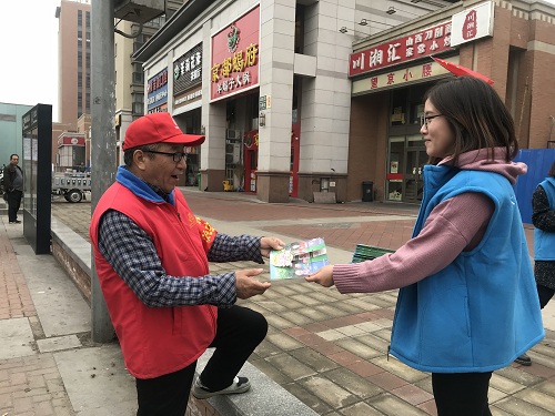高米店街道茉莉社区组织社区志愿者开展垃圾分类知识宣传活动。青年志愿者为社区居民发放统一制作的垃圾分类宣传材料,科普垃圾分类小知识。